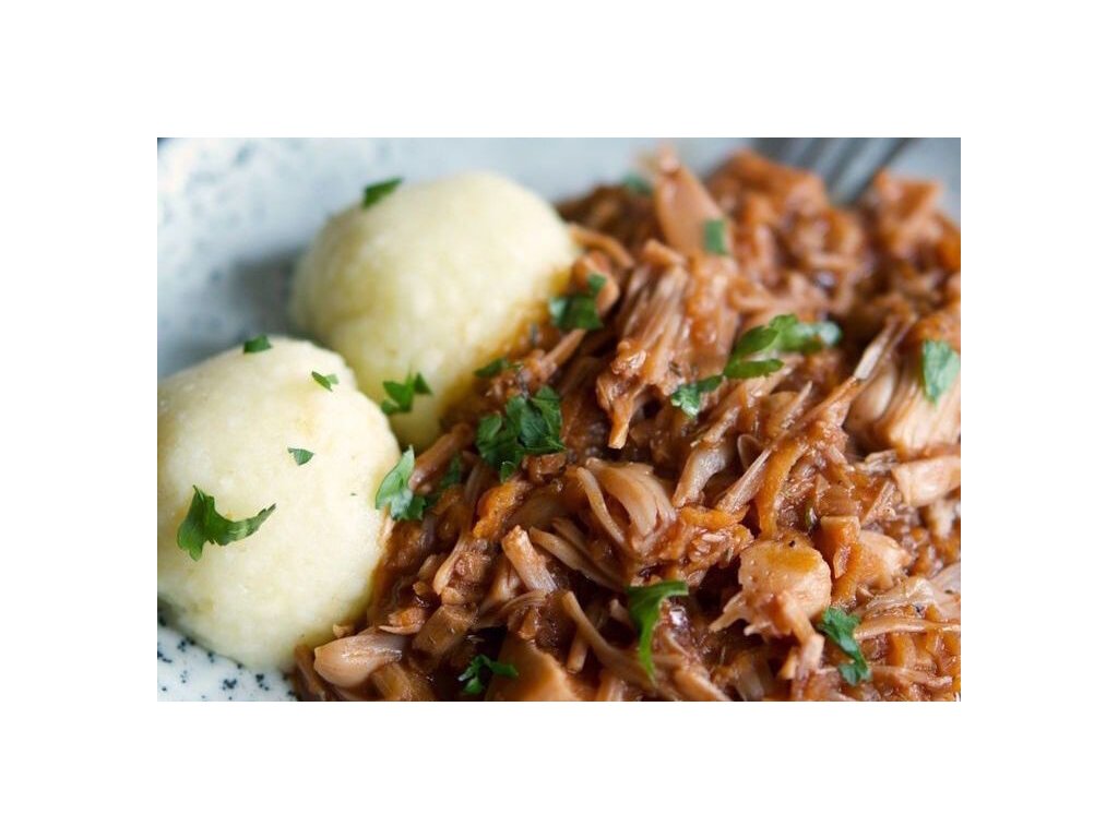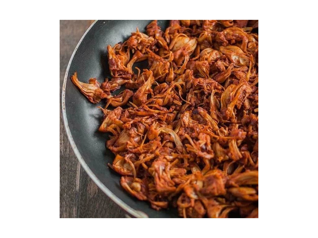 Jackfruitová dužina ve své ideální zralosti pro přípravu neuvěřitelně zdravých jídel s texturami podobnými trhanému masu.
